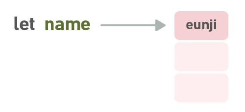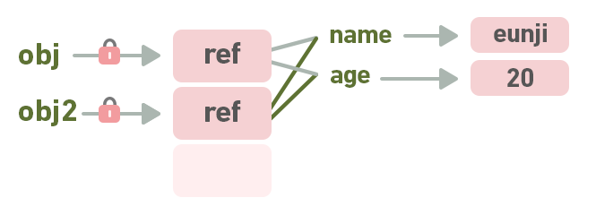 변수 eunji는 메모리 공간에 object의 reference를 저장하고,